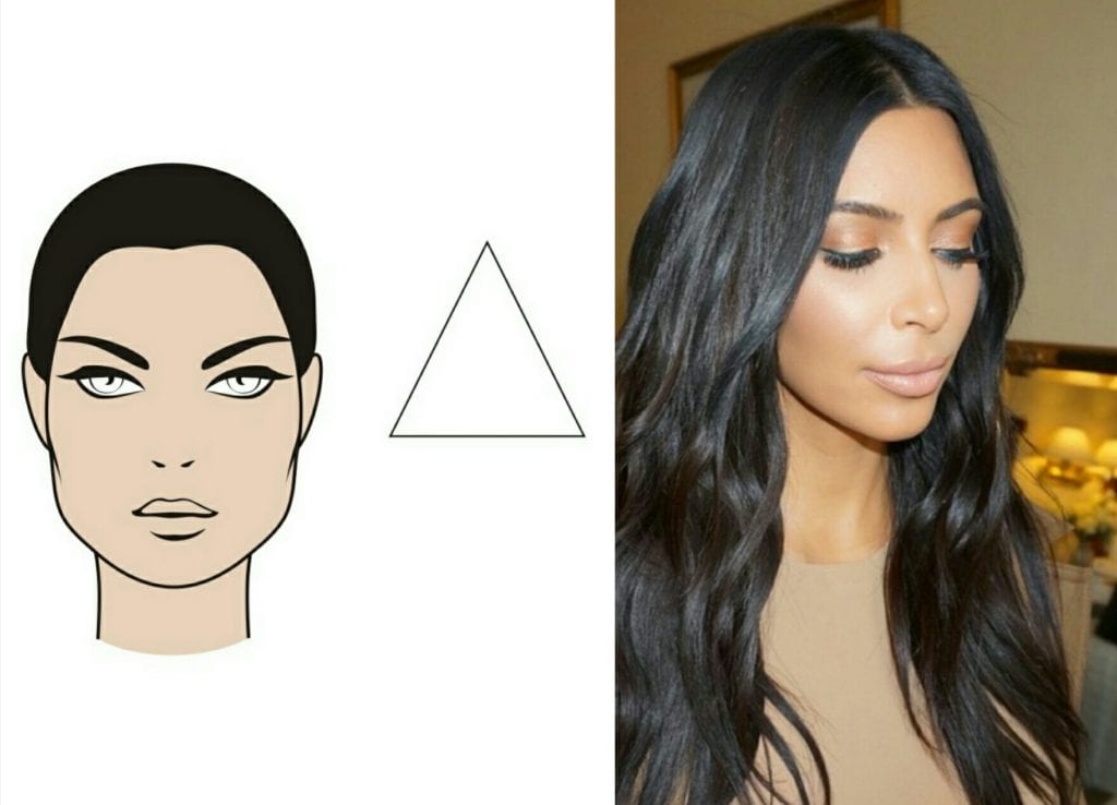 Si tu as un petit front avec un bas assez épais, c’est que tu as le visage en forme de triangle ou de A. Il faut que dégage le haut de ton visage tout en structurant le bas et en adoucissant tes traits. Oublie les coiffures type babydoll avec des franges droites bien épaisses, toi il te faut de la légèreté. Tu peux faire des coiffures avec des raies au milieu et des longueurs effilées un peu comme Kim Kardashian. Il est important de structurer ton visage par la longueur afin de donner du mouvement à ta coiffure, et surtout pour ne pas donner une impression de « petite tête ».